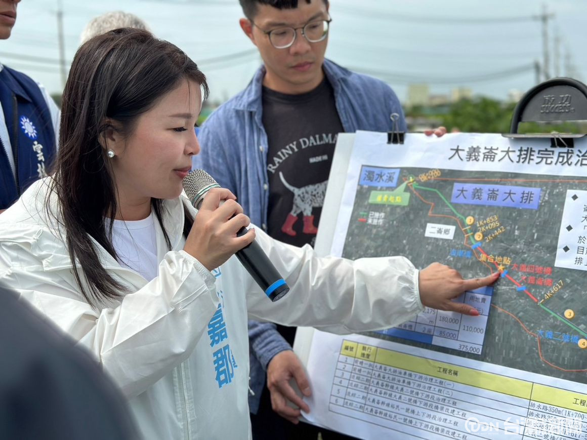 二崙鄉大義四號橋跨越大義崙大排因樑底高度不足,每逢豪大雨,山洪迅速流入,加上部分渠道斷面束縮,排水斷面不足,導致漫淹路面。張嘉郡表示,為提早發揮防洪功能,呼籲經濟部盡速核定補助大義四號橋改建。
