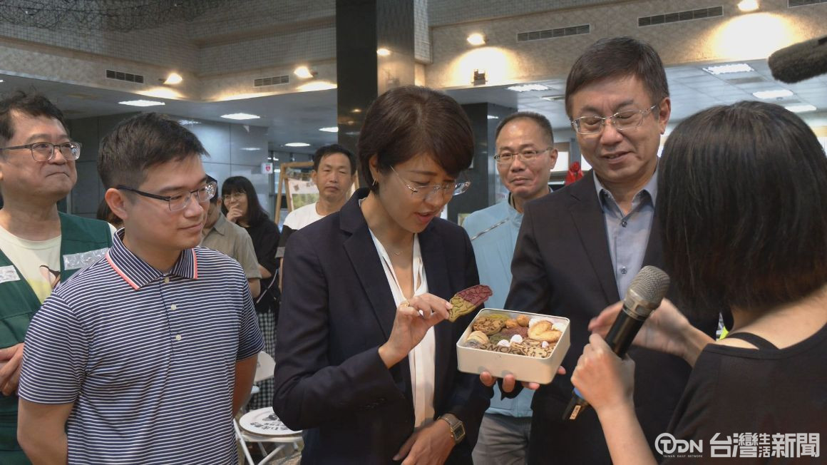 ▲縣長許淑華現場品嚐以石虎友善農作製作的糕點,藉由味蕾體驗石虎保育理念,呼籲更多人一起加入行動/記者 蔡育楷 攝