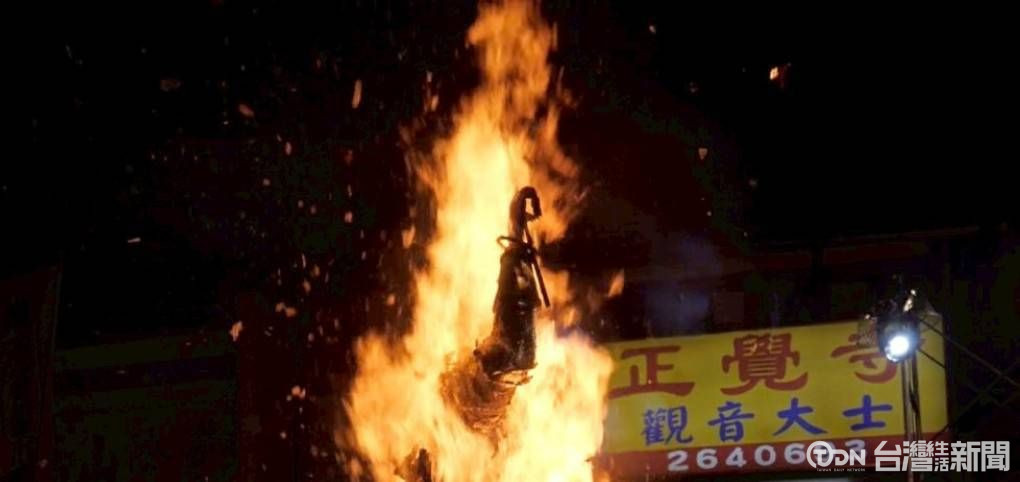 一年一度竹山大士爺文化祭,重頭戲大士爺火化昇天儀式,就在莊嚴的氛圍中開始,廟方也特別按照民雄祖廟的傳統,為大士爺製作龍袍,隨著主委籃志文、立委游顥將火點著,民眾也都雙手合掌、誠心祈福,祈求地方平安,願望可以順利實現。