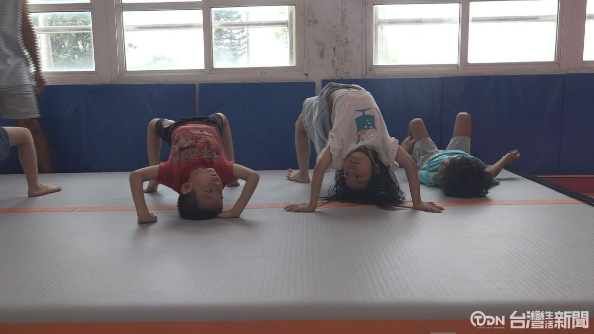 ▲崙背鄉陽明實驗小學在雲林縣政府支持之下,打造全縣第一座專業兒童體操教室,並於本學期正式開設體操社團,讓學童能在安全完善的環境中接觸並學習體操。記者 謝沂辰/攝