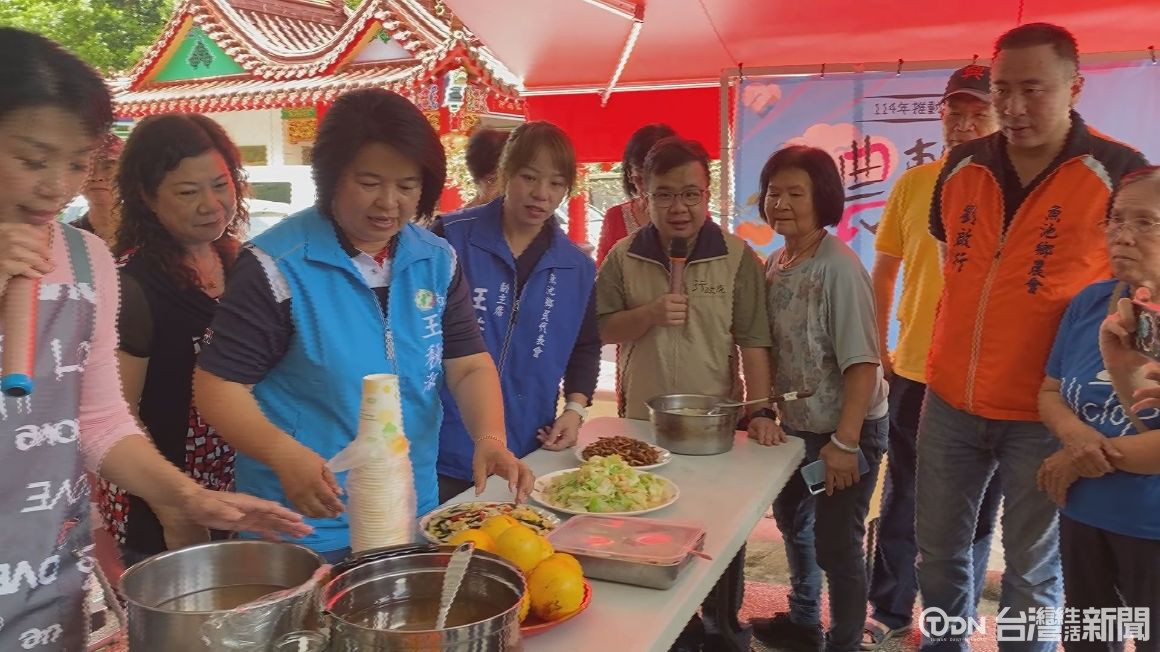 ▲魚池鄉五城村是傳統客家聚落,為了推廣在地美食,行政院中部聯合服務中心舉辦一場食農教育課程,邀請社區民眾一人煮一樣,分享美食料理/記者 范宏坤 攝