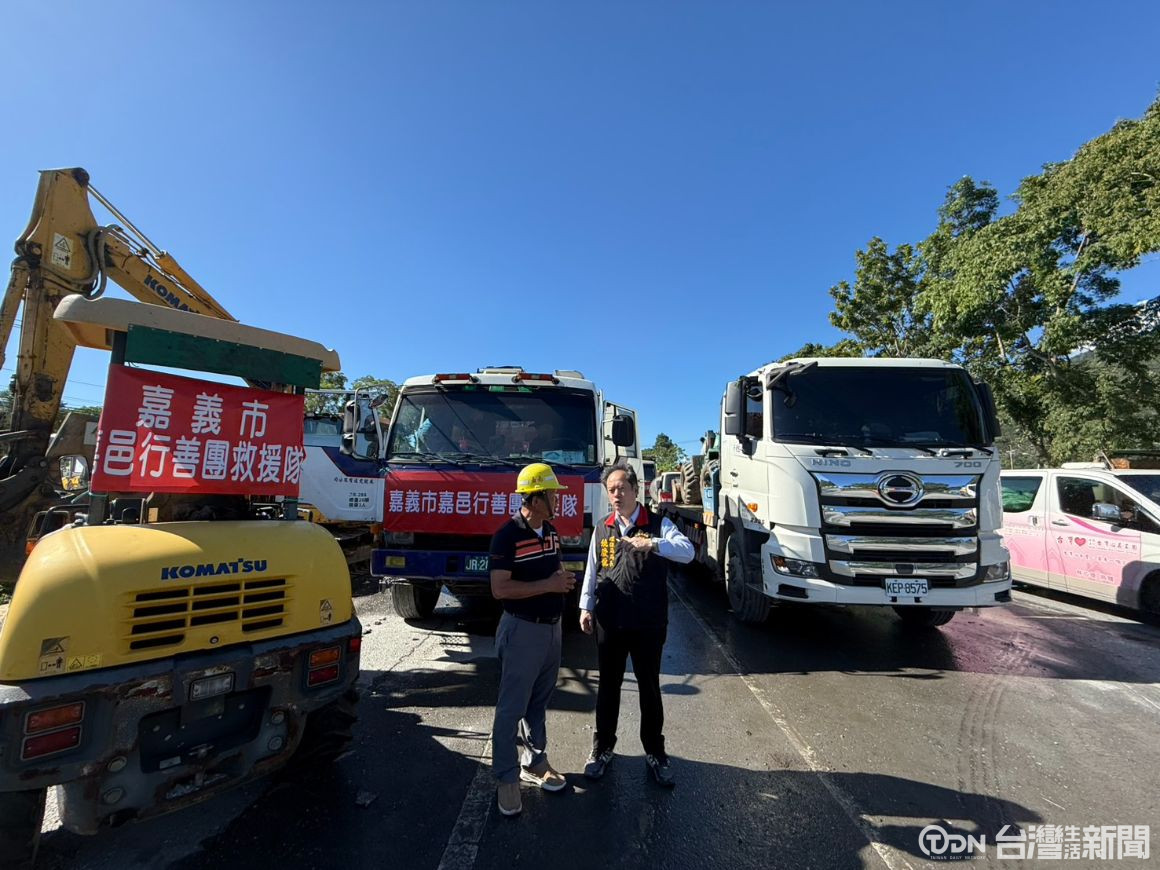 樺加沙颱風造成堰塞湖溢流,花蓮光復鄉成重災區,許多民眾自備工具挺進災區協助居民清理家園,嘉義市嘉邑行善團愛心不落人後,日前動員近百位志工和四五十台挖土機、推土機和山貓等大型機具展開救災行動,嘉義市政府消防局特搜隊也在26日上午帶著物資和機具前進花蓮。