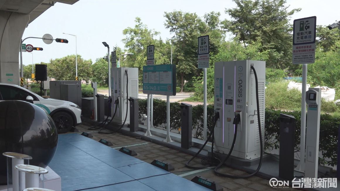 ▲臺南市首批6處快充站,共計18席180KW充電車格正式上線。/記者 陳嘉升攝