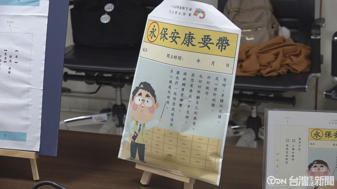 ▲臺南市政府教育局學生輔導諮商中心發揮創意,取諧音梗推出永保安康要帶(藥袋)安心宣導工具。/記者 陳嘉升攝