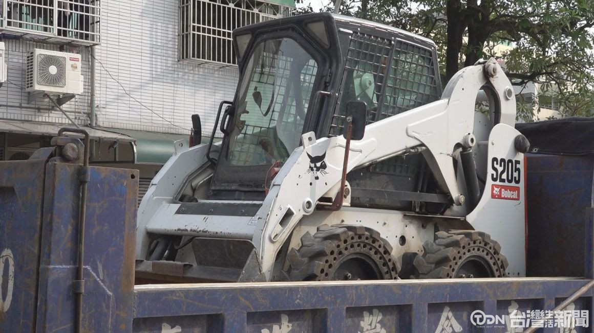 ▲小型鏟土機裝載上車,準備運往花蓮災區,協助家戶清理淤泥/記者 蔡育楷 攝