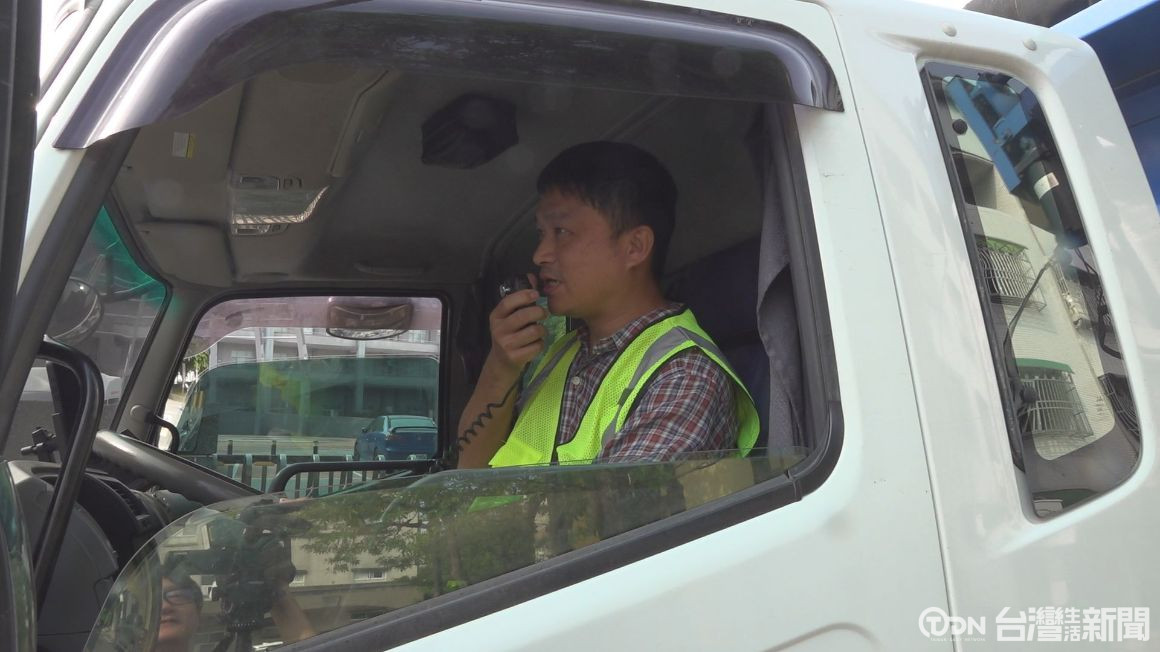 ▲救災隊整裝出發,駕駛手持無線電聯繫,準備投入花蓮救災/記者 蔡育楷 攝