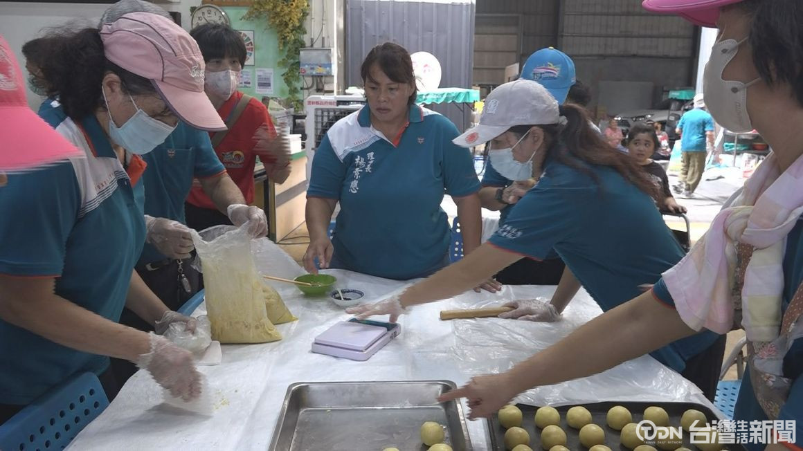 ▲中興里長楊素戀發揮其烘焙專長,號召志工們一起製作月餅分送給社區居民。記者 謝沂辰/攝