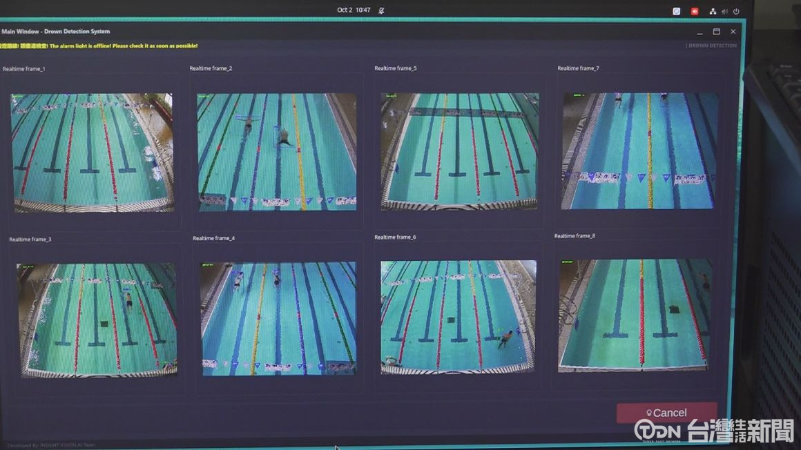 ▲營運廠商建置「AI防溺系統」,只要偵測到疑似溺水事件,將會馬上來警報,協助救生員快速採取救援,確保民眾安全。/記者 江儀 攝