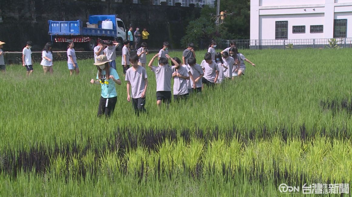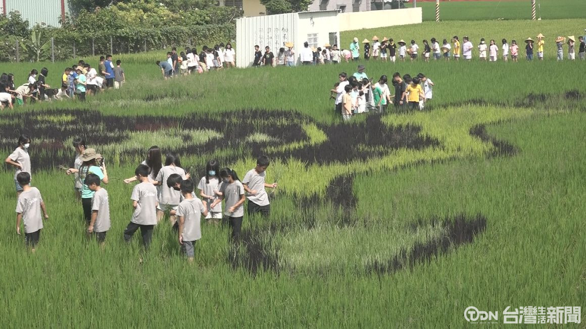 這十多年來,草屯鎮北投國小積極推動食農教育,不僅帶著學生種稻,還利用特殊品種秧苗,結合學校閱讀的推動,種出特色圖案。
