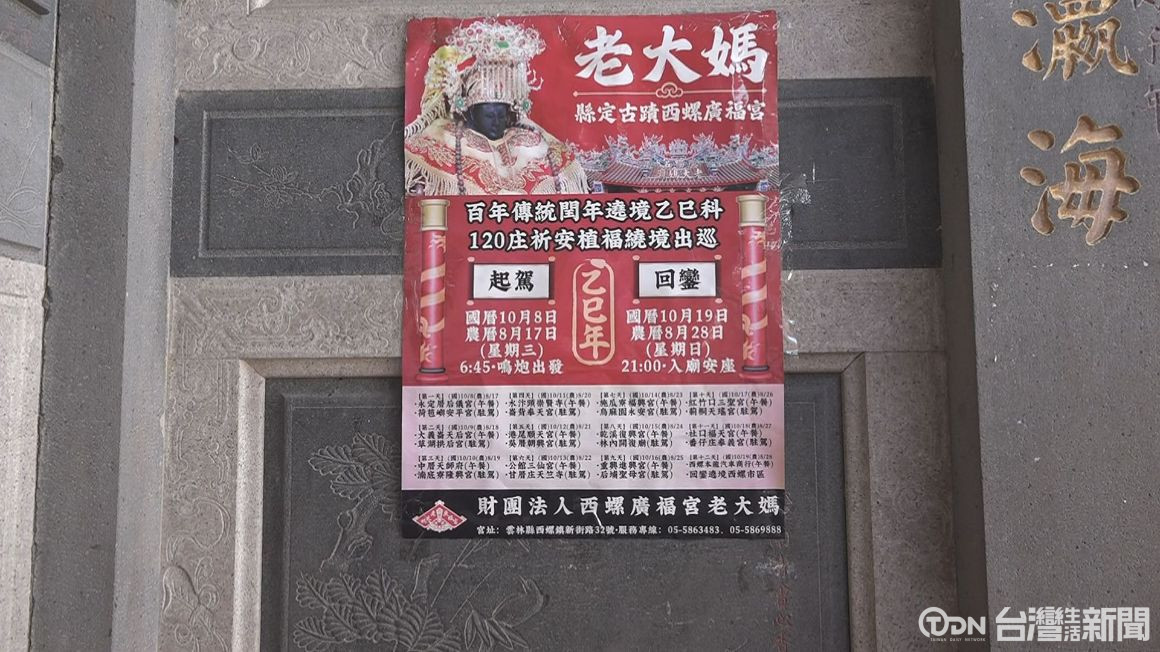▲西螺廣福宮老大媽閏年遶境將於10月8日至10月19日展開,廟方邀請信眾一同迓媽祖、逗熱鬧。記者 謝沂辰/攝