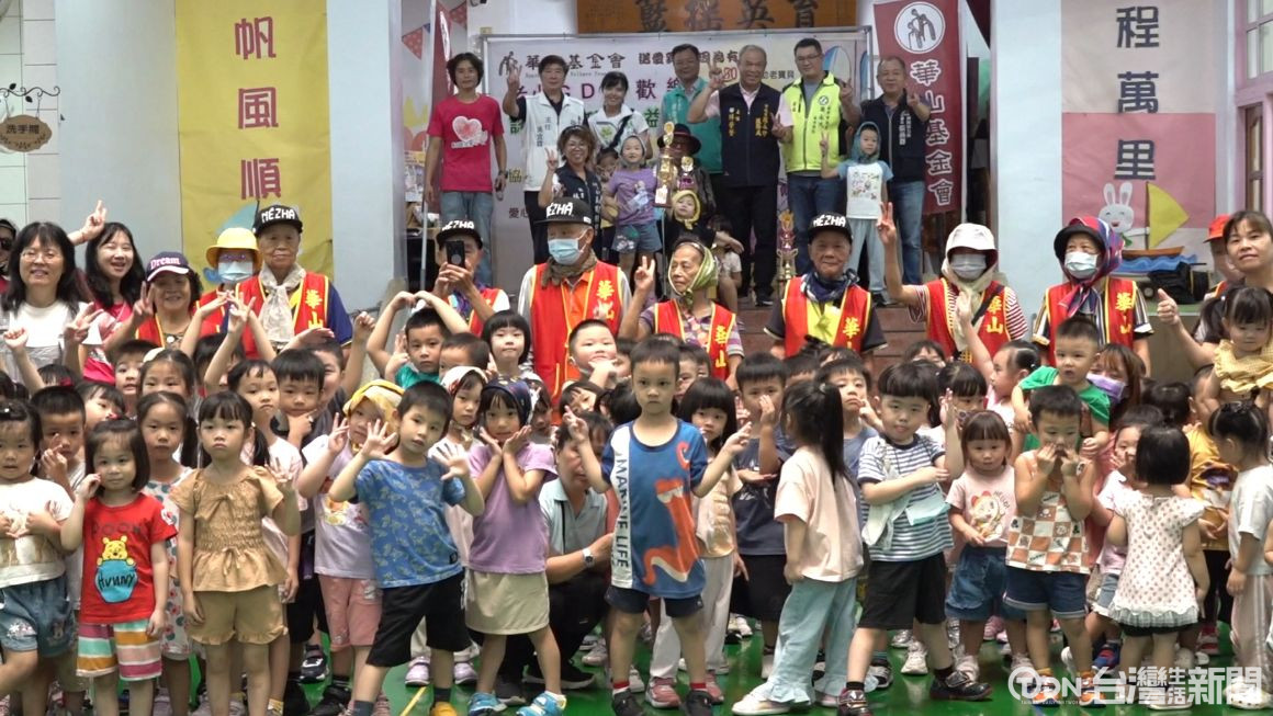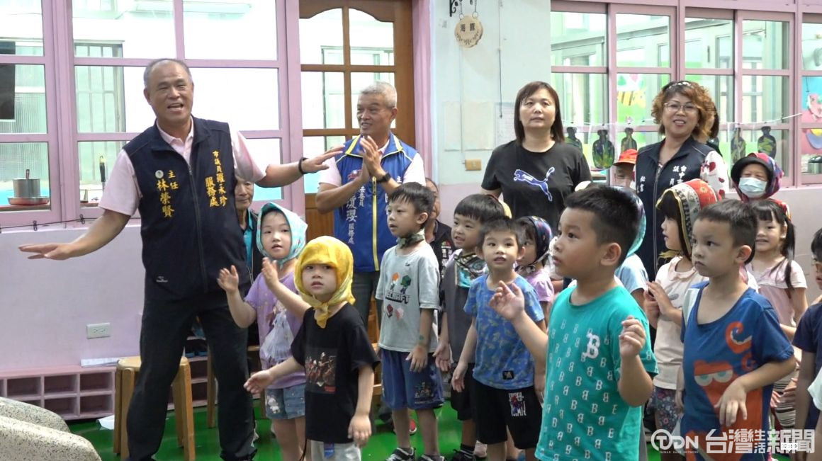 不少人都有歌手夢,像這位85歲的陳阿公,擁有歌手魂,不僅熱衷投入社區的歌唱活動,更在歌唱比賽中獲獎無數,這天華山基金會神岡愛心天使站,就帶著長輩與幼兒園的小朋友一起同樂,大家裝扮成韓國流行歌手的頭巾造型,載歌載舞,現場氣氛相當歡樂。