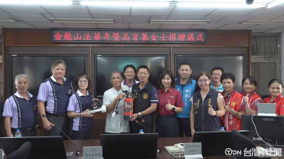 ▲金龍山法華寺與高育蓁女士捐贈4套XR滅火訓練設備給南投縣政府消防局/記者 蔡育楷 攝