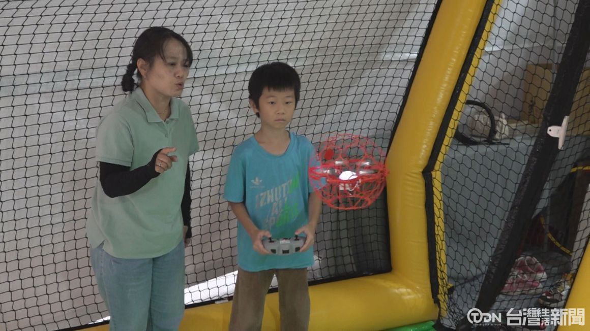 ▲小朋友在工作人員指導下親自體驗小型無人機操作,考驗手眼協調,也感受科技應用的樂趣/記者 蔡育楷 攝