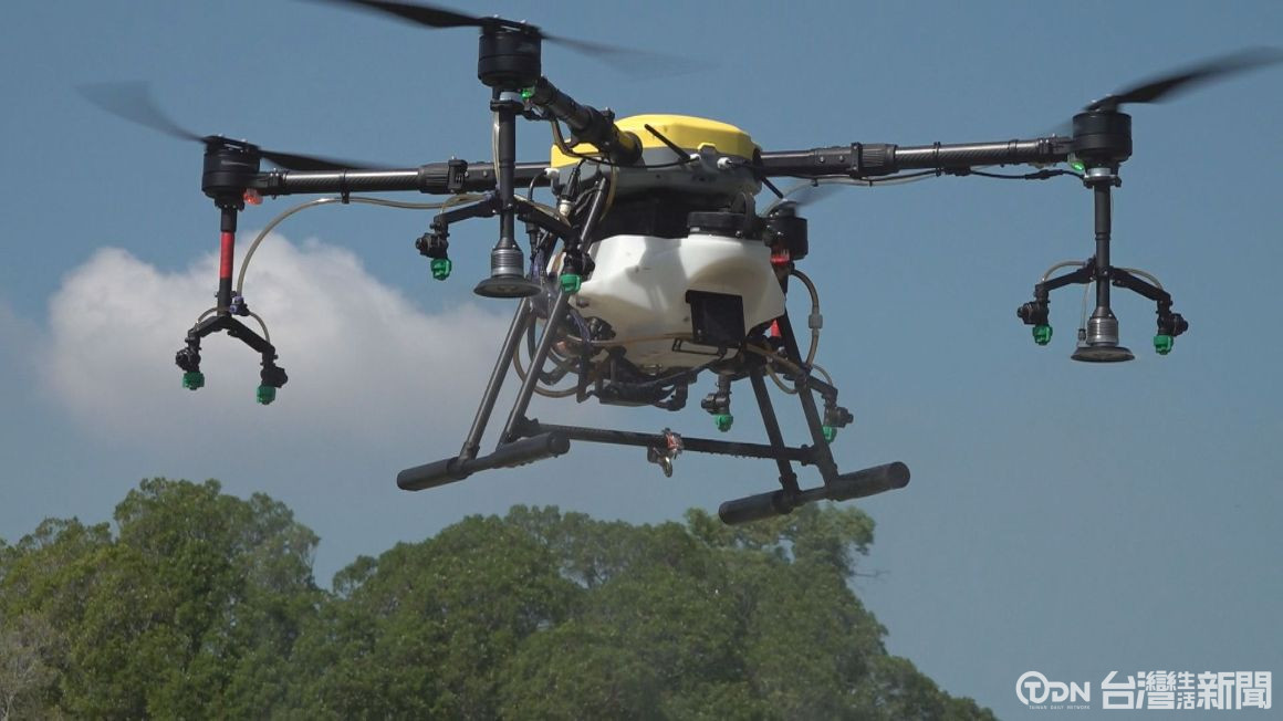 ▲農業噴灑無人機進行飛行展示,展現智慧農業的實際應用與效率/記者 蔡育楷 攝