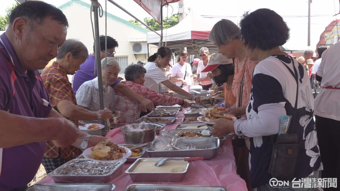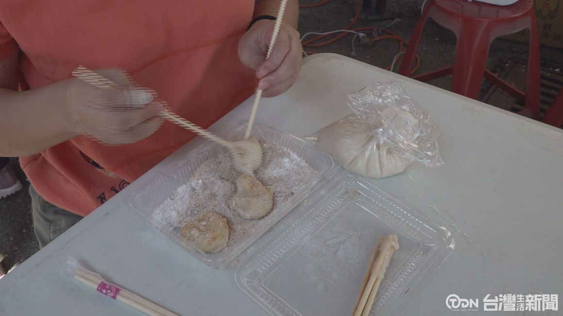 ▲餐桌上擺出傳統麻糬給民眾享用 / 記者 王可萱 攝