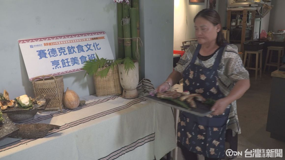 ▲賽德克飲食文化烹飪美食班,學員將完成的料理,進行展示。/記者 王昭聖 攝