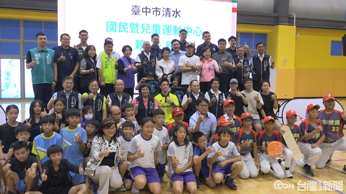 台中市長盧秀燕與各界貴賓一同啟動儀式,歡喜迎接地方期盼已久的清水國民暨兒童運動中心,正式開幕營運,不僅是海線地區首座擁有六大核心運動設施的現代化運動場館,更是第一座結合親子館的運動中心。