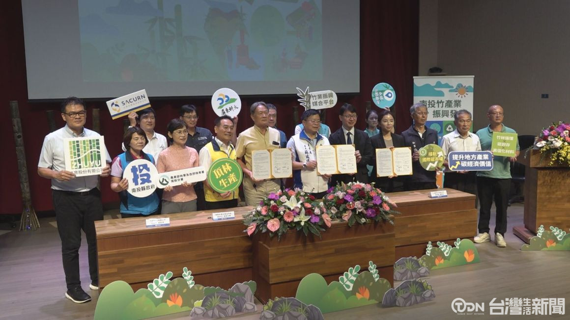 由南投縣政府與屏東科技大學見證,竹山在地合作社、業者,和台中烏日一間企業簽屬合作意向書(MOU),共同建立竹產業穩定供應鏈,並鏈結國際碳權市場。