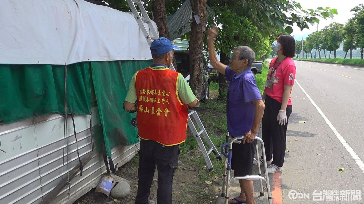 ▲獨居長輩貨櫃屋老舊破損,華山基金會義工協助修繕/記者 賴秋峰攝
