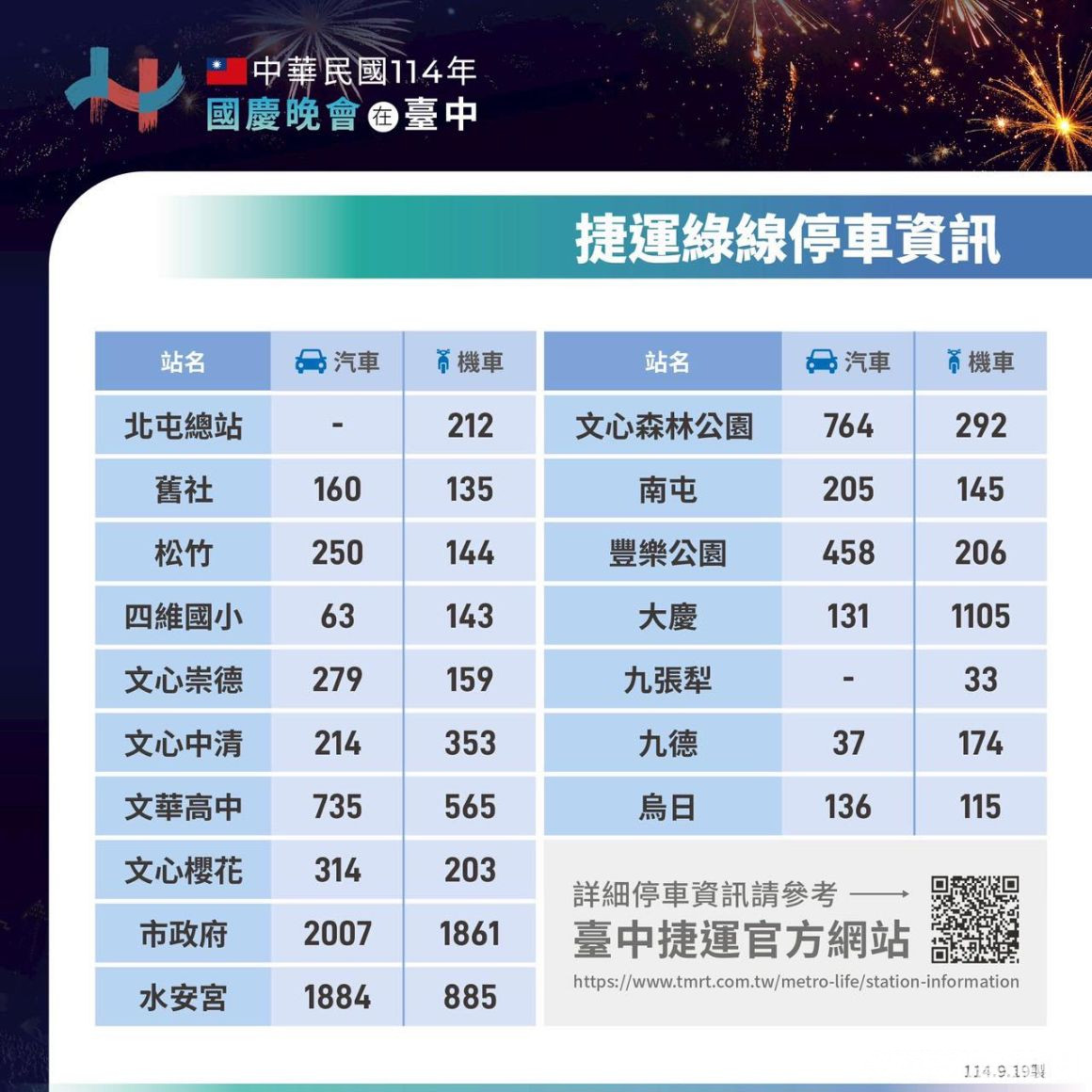 ▲國慶晚會會場周邊停車場資訊/圖:台中市政府提供