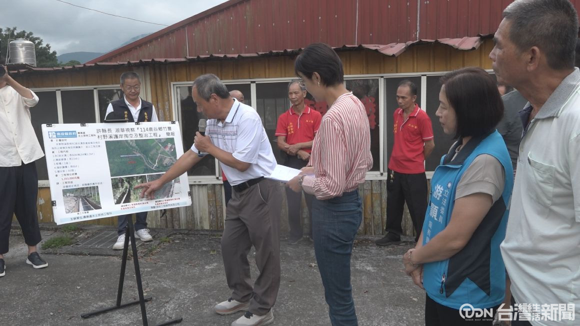 南投縣長許淑華日前前往鹿谷鄉,會勘竹豐村野溪護岸整治工程,並針對護岸掏空以及破損狀況進行討論,期望透過整治工程,確保周邊居民的生命財產安全。