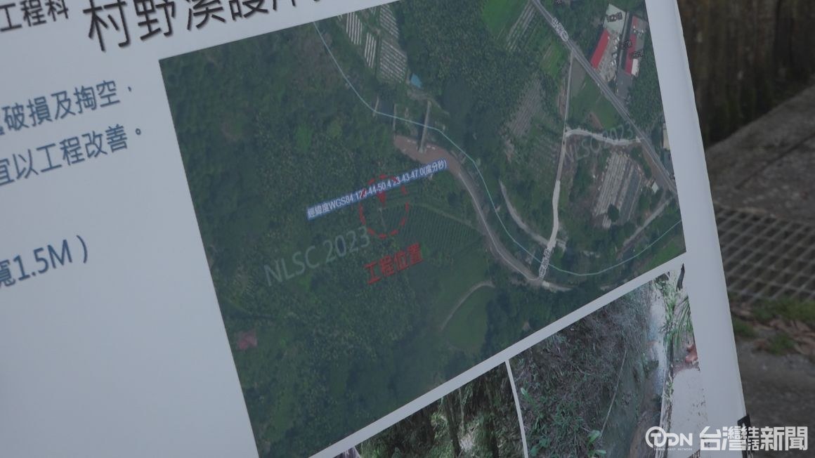 ▲竹豐村野溪護岸整治工程,並針對護岸掏空以及破損狀況進行討論。/記者 周有勝 攝