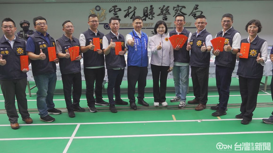 ▲雲林縣長張麗善親自頒發破案慰勉金鼓勵員警,展現雲林打造無毒家園的決心。/記者 江儀 攝