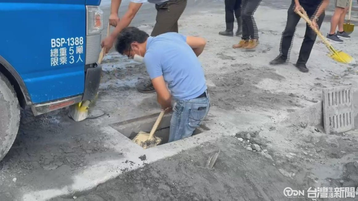 ▲立法委員劉建國前往災區也舉起鏟子變身「鏟子超人」。圖/立法委員劉建國服務處提供。