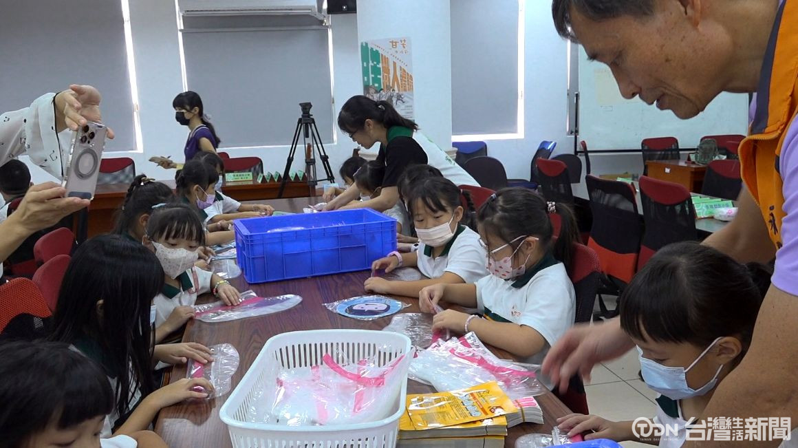 ▲北台中家扶中心,在大里永隆國小,舉辦小小職人甘苦體驗,讓小朋友模擬家庭代工/記者 陳昭安攝