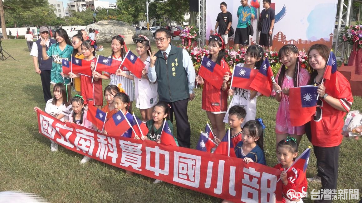 雙十節活動開場由南科實驗中學國小部熱舞社學生,帶來精彩舞蹈表演,展現年輕世代的創意和自信,為典禮注入活力,隨後由市長黃偉哲率領,唱國歌與升旗。