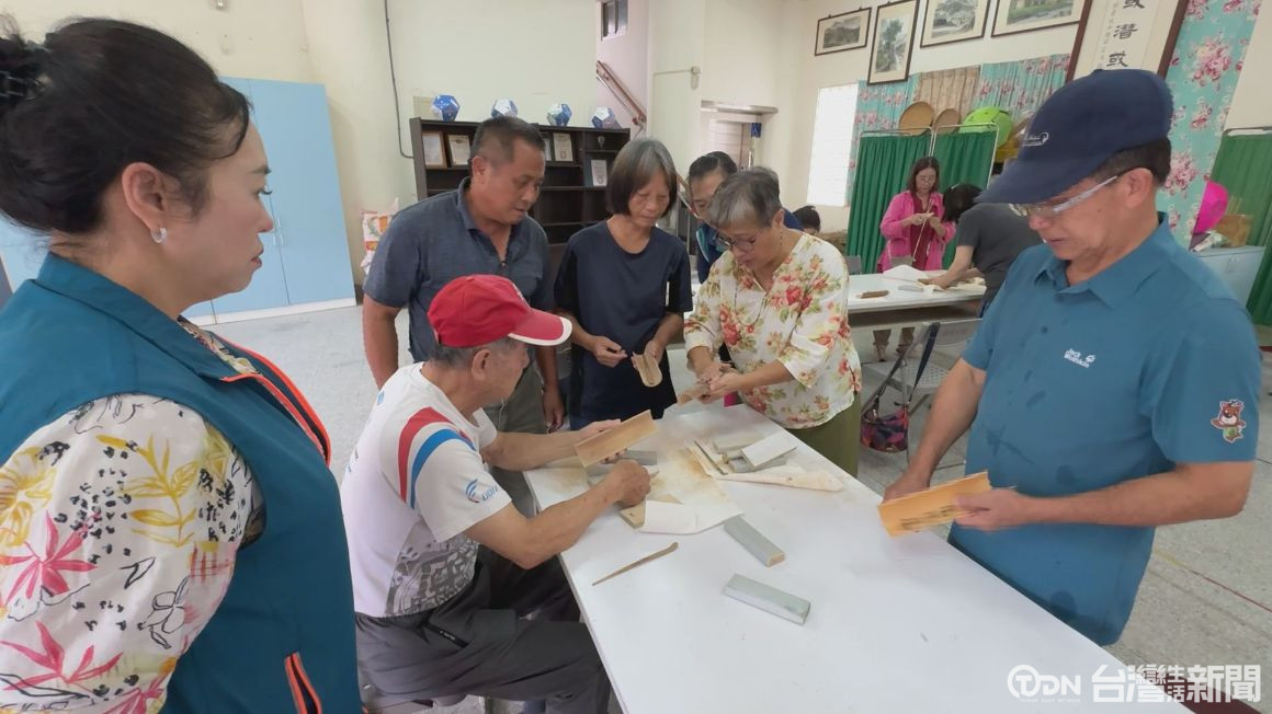 國姓鄉南港社區關懷據點舉辦一場手工藝活動,讓社區長輩製作泡茶工具,也學習茶藝文化。