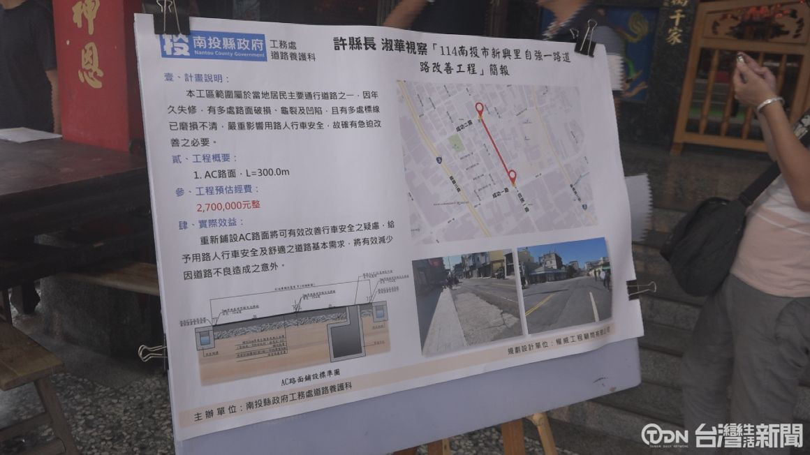 南投市有許多地方的道路因為年久失修,是已經出現路面不平、破損的問題,而有的產業道路因為沒有擋土的設施,下大雨會出現土石流的狀況,為了解決這個問題,南投縣長許淑華都特別會勘,希望能夠改善用路人的行車安全。