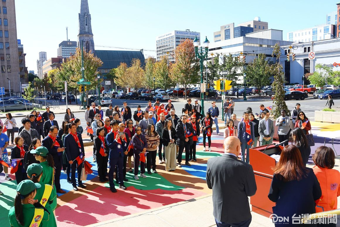 ▲美國紐約州雪城市舉辦中華民國國慶升旗典禮,百位僑胞共襄盛舉。/嘉義市政府提供