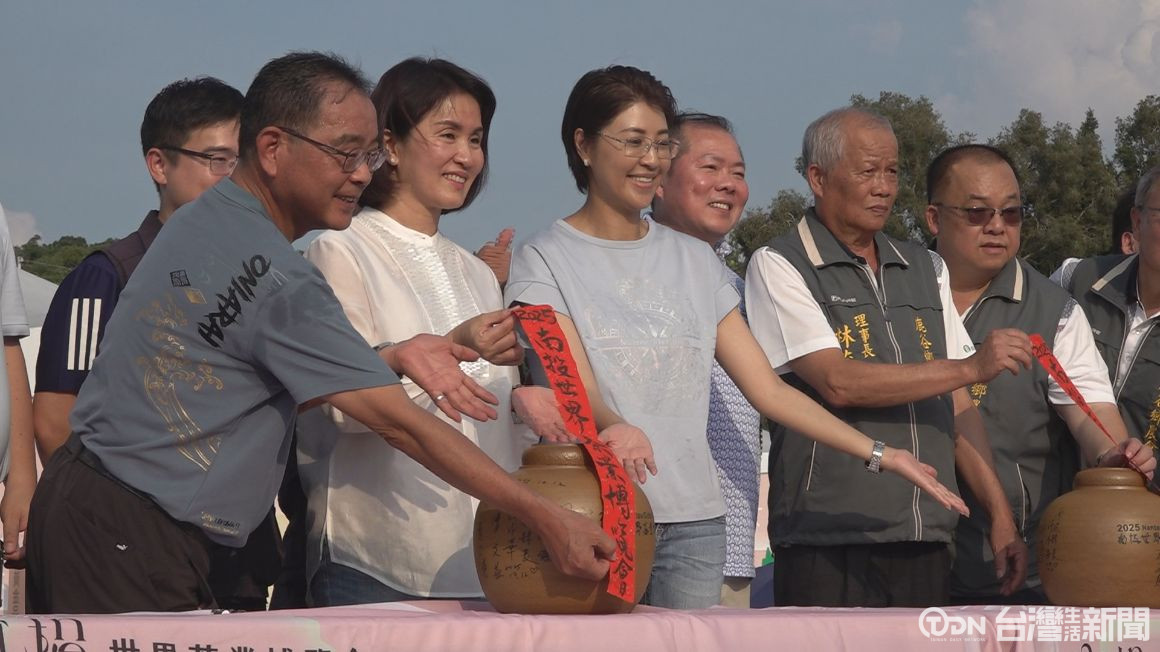 ▲眾人出席茶博封茶儀式,長官們於茶甕外簽名留念/記者 廖韋凌攝