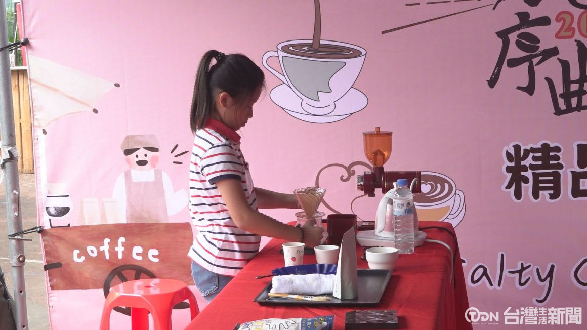 小朋友專心沖煮咖啡,氣勢不輸大人,這是華山休閒農業區每年都會辦理的小小咖啡師比賽,今年是在水保農村派對日活動中舉辦,吸引來自各地的小朋友前參加,最後由來自彰化的張芸瑄第一次報名就拿下冠軍。