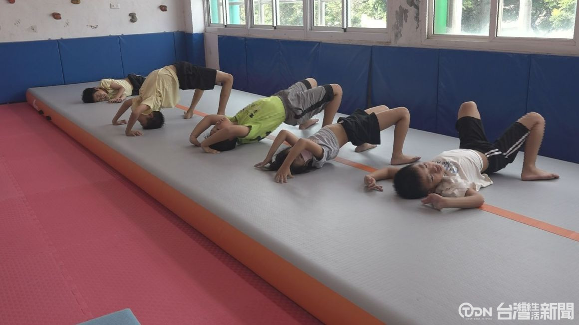 ▲雲林縣政府和陽明國小為了讓偏鄉的孩子也能安全學習體操,特別打造兒童體操教室,並成立體操社團,讓更多小朋友接觸這項運動。記者 謝沂辰/攝