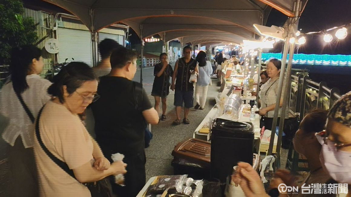 ▲星光市集搭配水里嬉遊季活動,將市集攤位移上來自由路邊的人行道舉辦/記者金芸亘攝