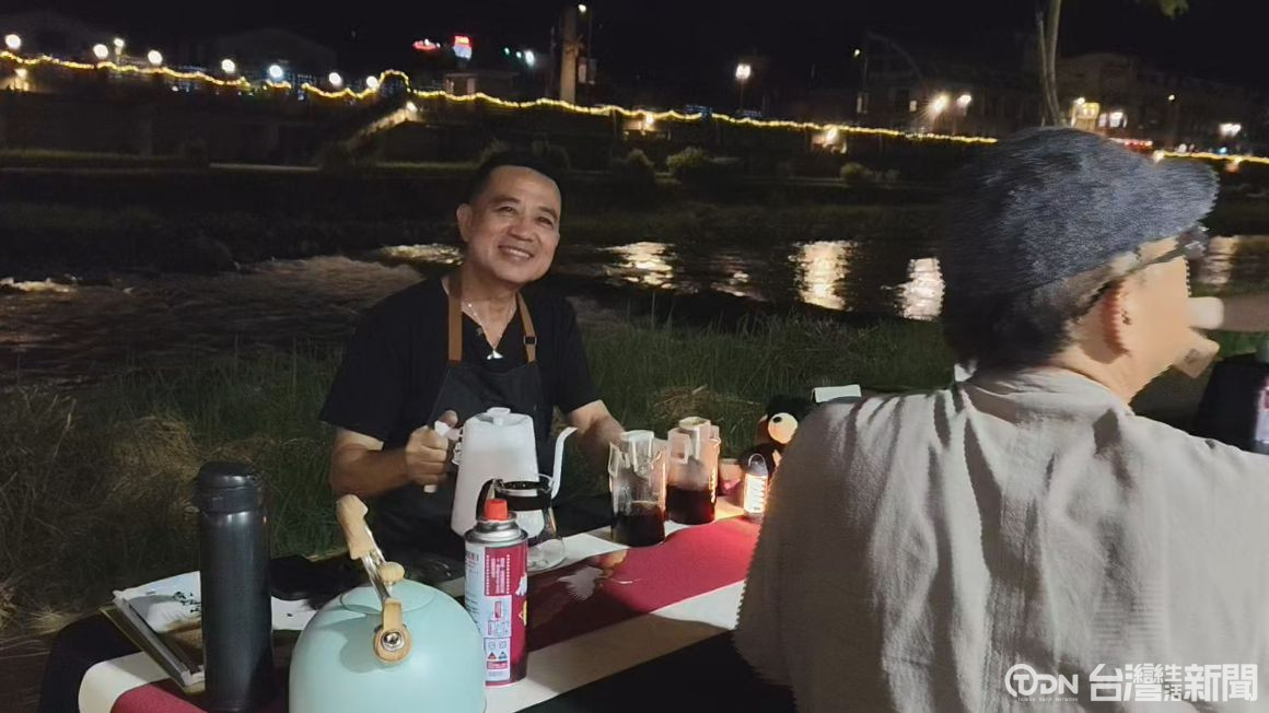 ▲水里溪畔擺設茶席提供免費品嘗好咖啡/記者金芸亘攝