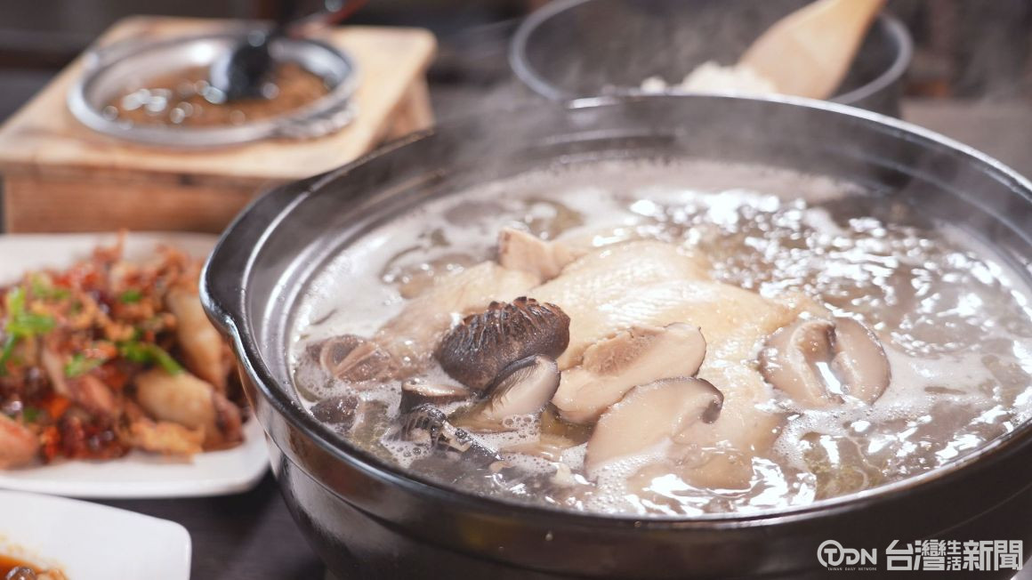 ▲肥美飽滿的椴木香菇,搭配一整隻土雞,看起來十分美味/記者 李晉仰 陳昭安攝