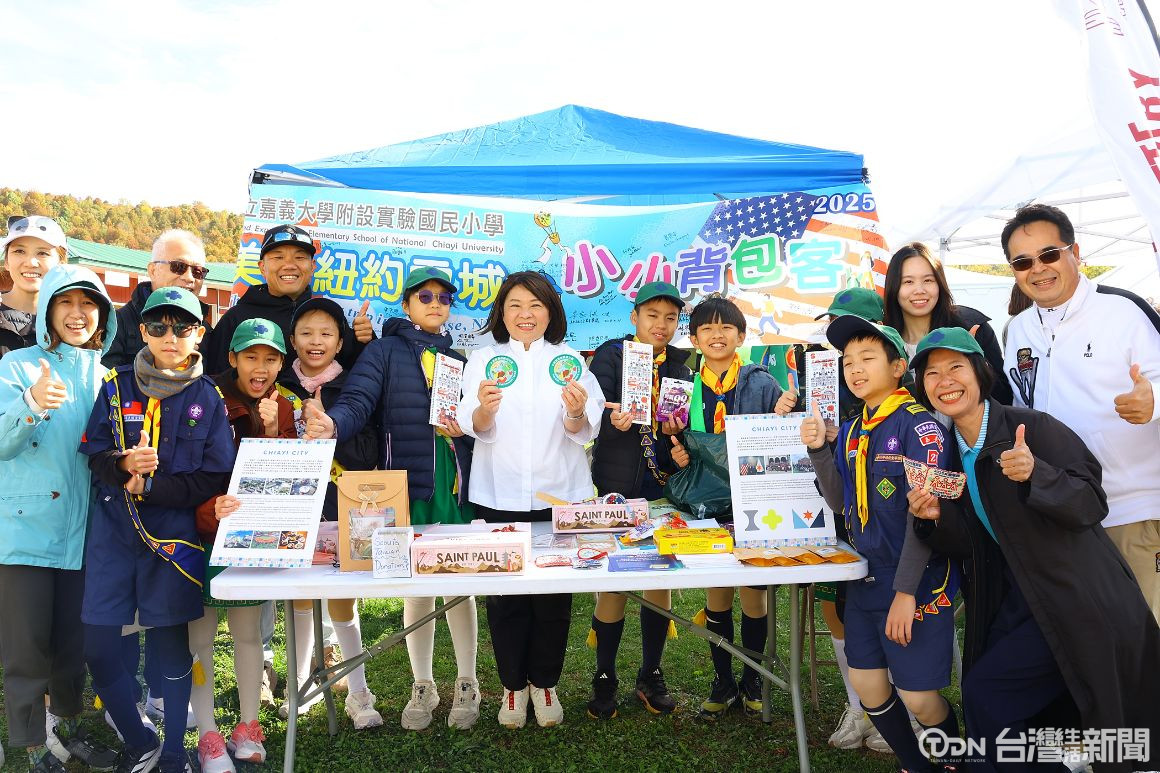 嘉義市市長黃敏惠率團訪問美國紐約雪城市,其中,有一群嘉大附小小童軍也跟著市府團隊出國做外交,除了在雪城市舉辦的中華民國國慶升旗典禮擔任重要的升旗手以外,日前還參與雪城地區年度盛事拉法葉蘋果節,帶著嘉義特產到場擺攤義賣,行銷嘉義市。