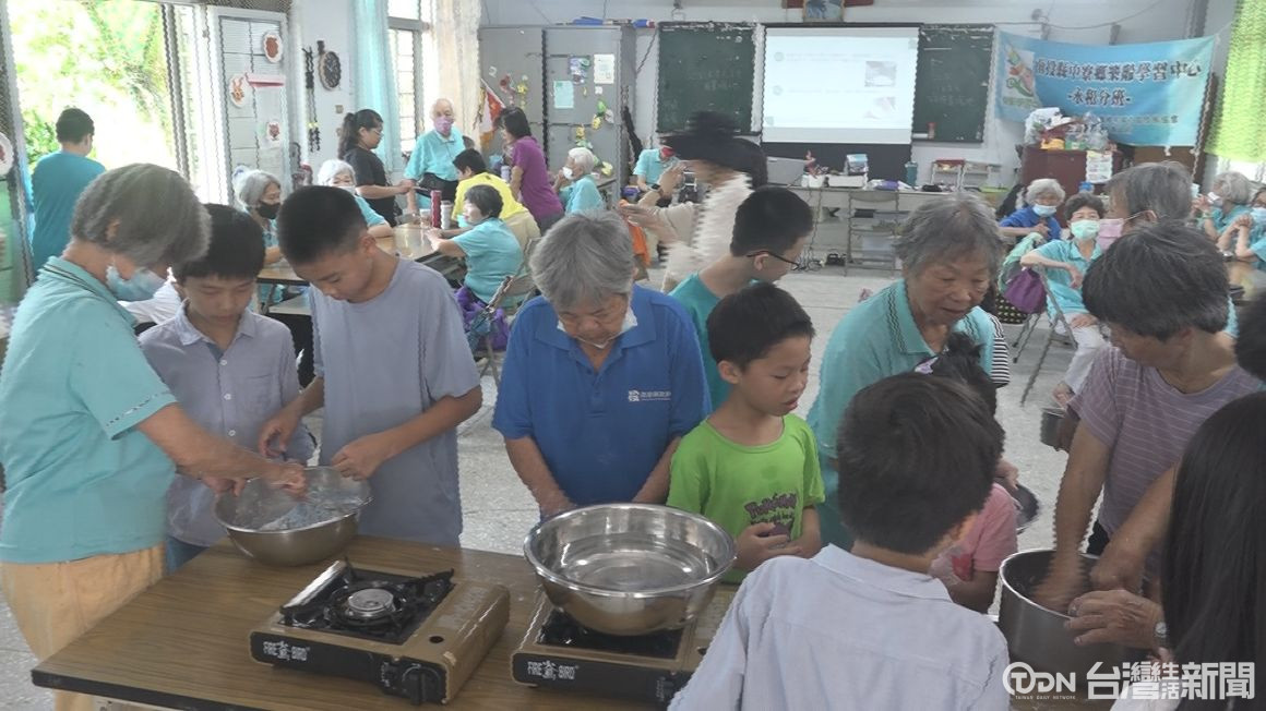 在認識中寮鄉在地食材後,學生們在長輩的耐心教導下,從揉麵粉開始,體驗搓湯圓的製作過程,展開充滿溫度的老幼共學。