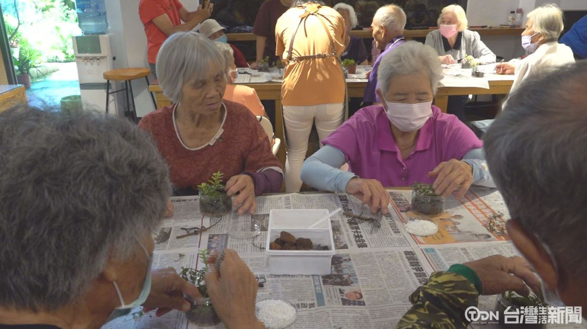 ▲迷你的生態瓶使用的素材都很小,製作過程有別於長者過去進田裡工作的經驗,會運用到手指末梢的神經及小肌肉,有助延緩老化 / 記者 王可萱 攝