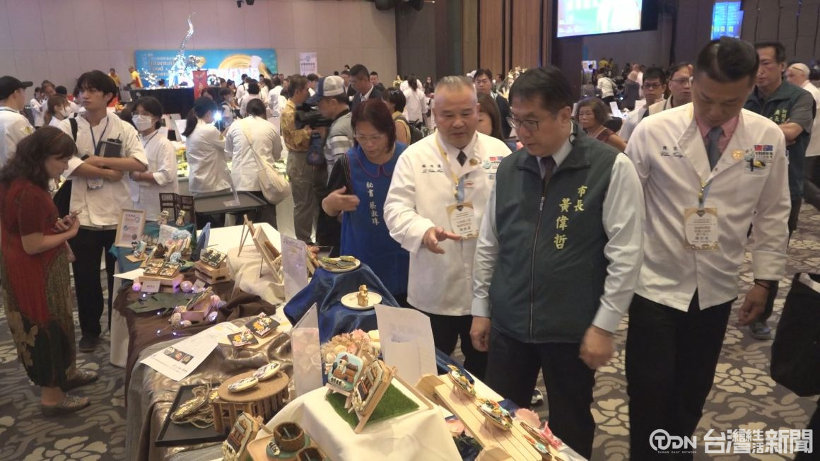 現場也展出多項靜態藝術作品,有果醬畫盤、造型翻糖蛋糕等等,希望透過比賽,讓臺南跟世界的餐飲專業人才交流,並讓在地食材、飲食文化跟創意被更多人看見,吸引國際旅客走入臺南。