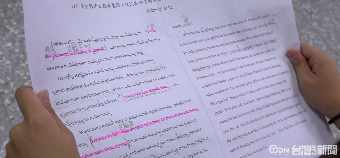 拿起講稿,高晴大方地用母語朗讀,靠著發音標準、聲調自然的好表現,獲得評審青睞,在台中市語文競賽複賽中,獲得太魯閣語朗讀特優。