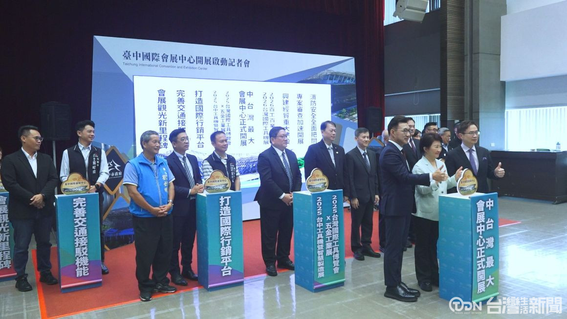 市長表示,會展中心歷經疫情與缺工挑戰,終於完工一期啟用。該中心斥資89億元興建,外貿協會再投入4.5億元完善設施,打造符合國際規格的展覽與會議場域,將會是「關稅衝擊下的強心針」,陪伴中部產業拚經濟、拚國際。