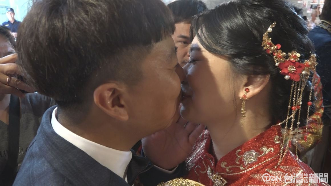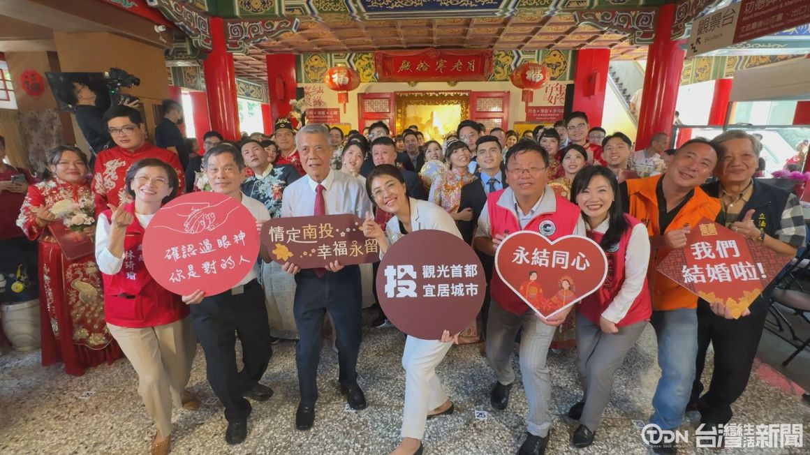 ▲最後在南投縣長許淑華、日管處祕書涂振昇、魚池鄉長劉啟帆、日月潭文武廟董事長張德林的祝福之下,希望30對新人一生一世,永遠相愛/記者 范宏坤 攝