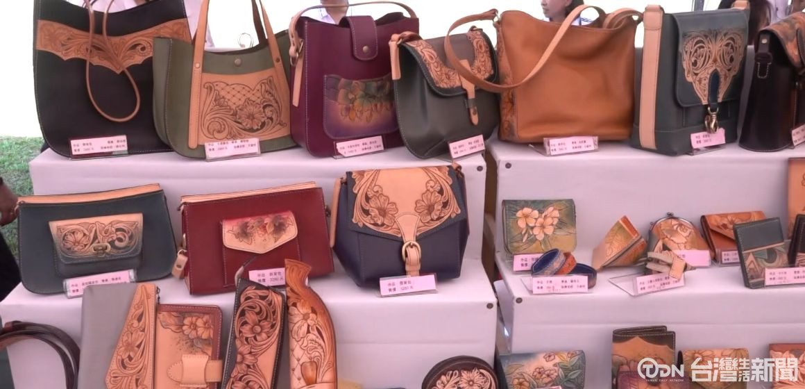 展場攤位呈現豐富多元的作品,包括服飾設計、皮革工藝、木工、美容以及烘焙等課程成果。