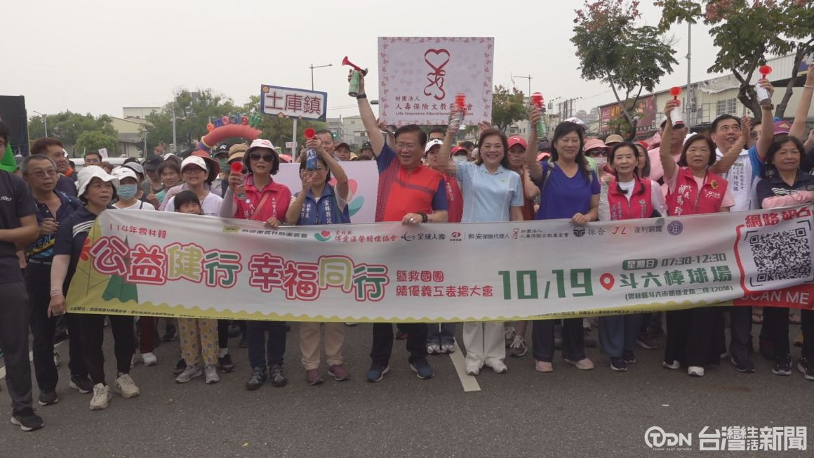 鳴聲響起眾人一起出發。救國團雲林團委會與雲林縣博愛溫馨關懷協會合辦的「公益健行.幸福同行」今年吸引超過3000人報名參加,博愛溫馨關懷協會說明,本次健行的路線是繞斗六棒球場行三圈,促進民眾身體健康以外,現場也安排「愛心祈福券公益擲筊」環節,邀民眾合力來做公益,祭出來自各方提供的440個獎項,最大禮是由縣長張麗善提供的機車一台。