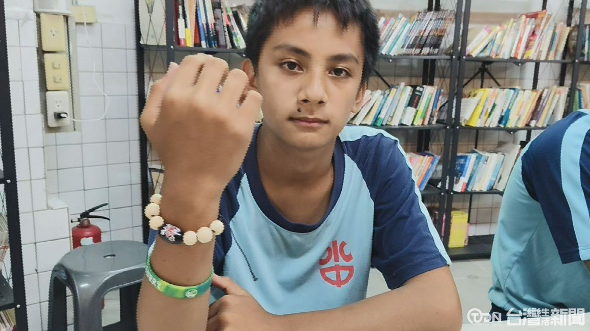 ▲美麗的琉璃珠與純樸的木珠,成為手腕中美麗的裝飾品//記者金芸亘攝