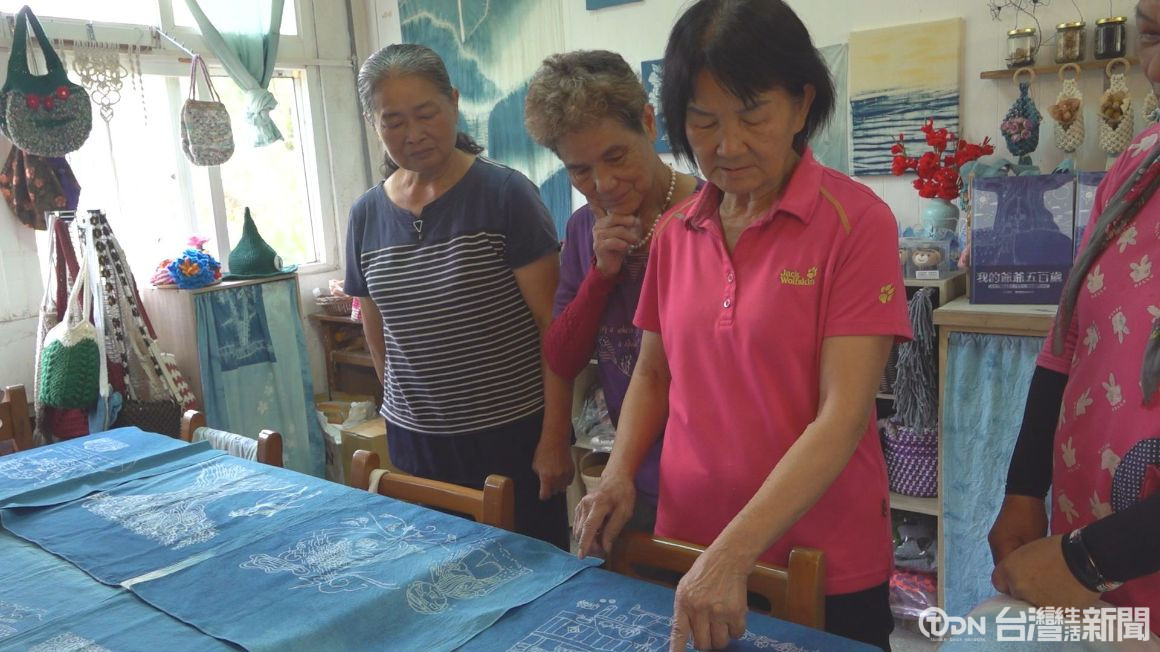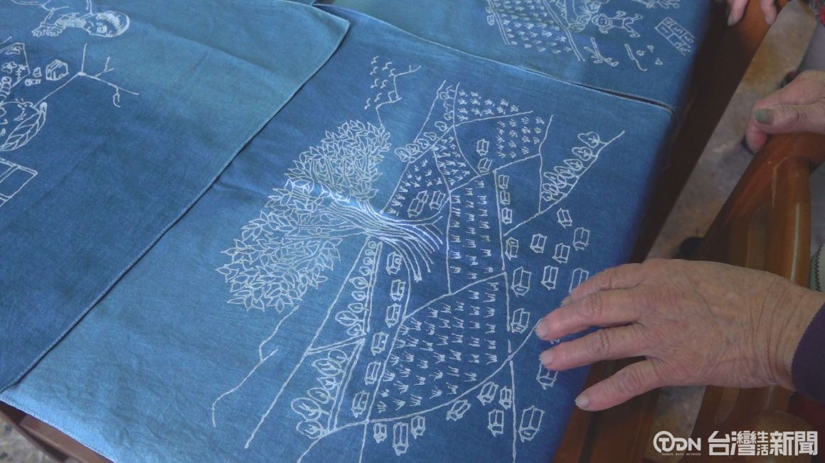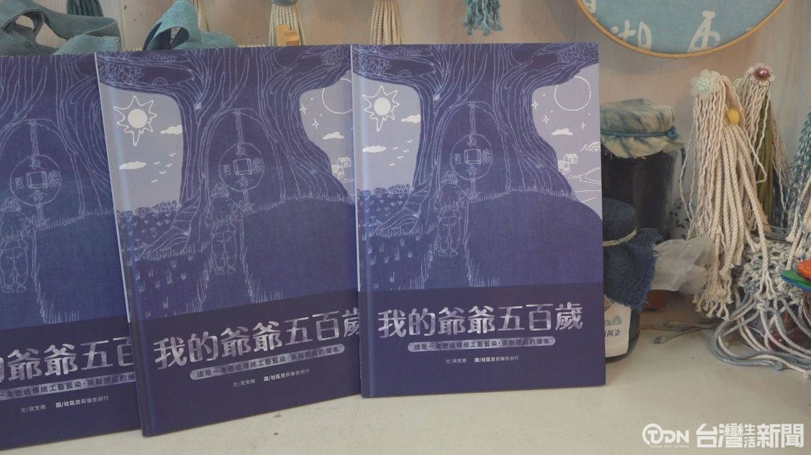 ▲為記錄、傳承地方記憶,樟湖藍染人文發展協會號召超過20位長輩以藍染工藝作畫,製作繪本「我的爺爺五百歲」 / 記者 王可萱 攝